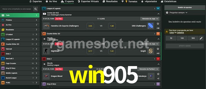 O win905 oferece uma grande seleção de opções de apostas em e-sports com probabilidades competitivas